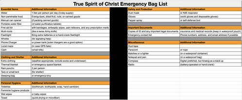 Emergency Prep List